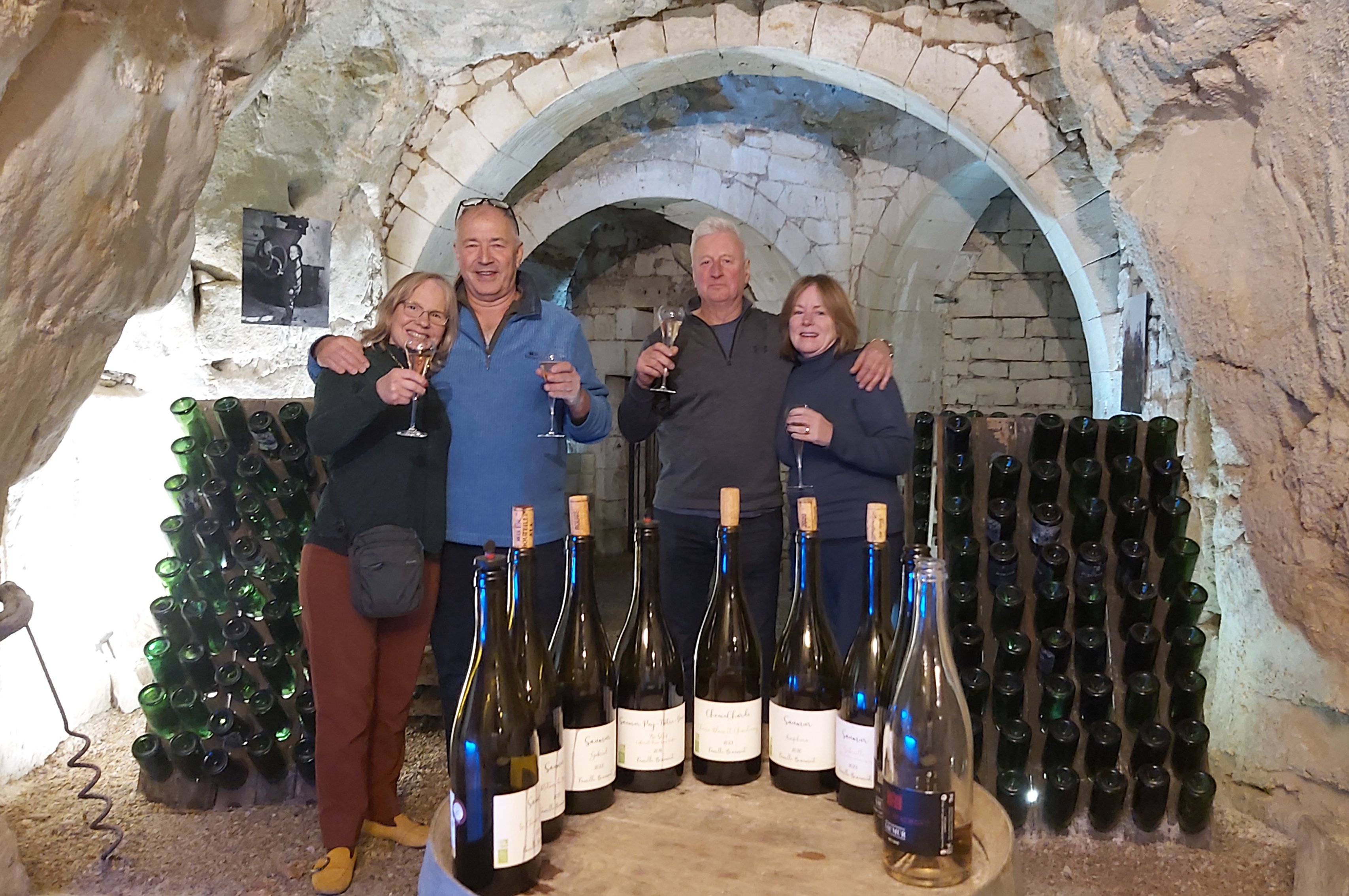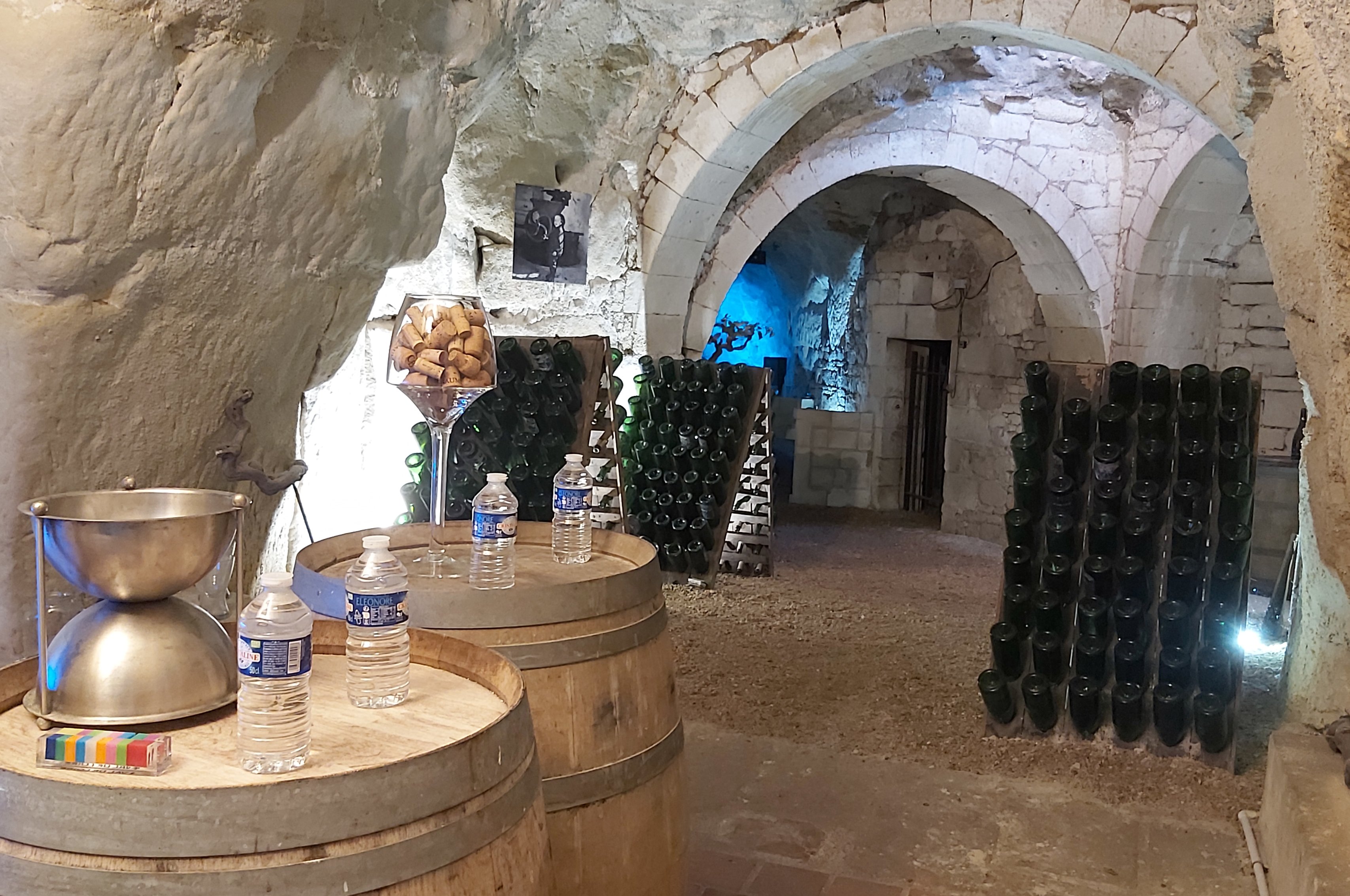 Post-tasting, enjoy a casse-croûte vigneron, relax in the serene ambiance of our park, on the terrace or in la Cantine our charming troglodyte cave.